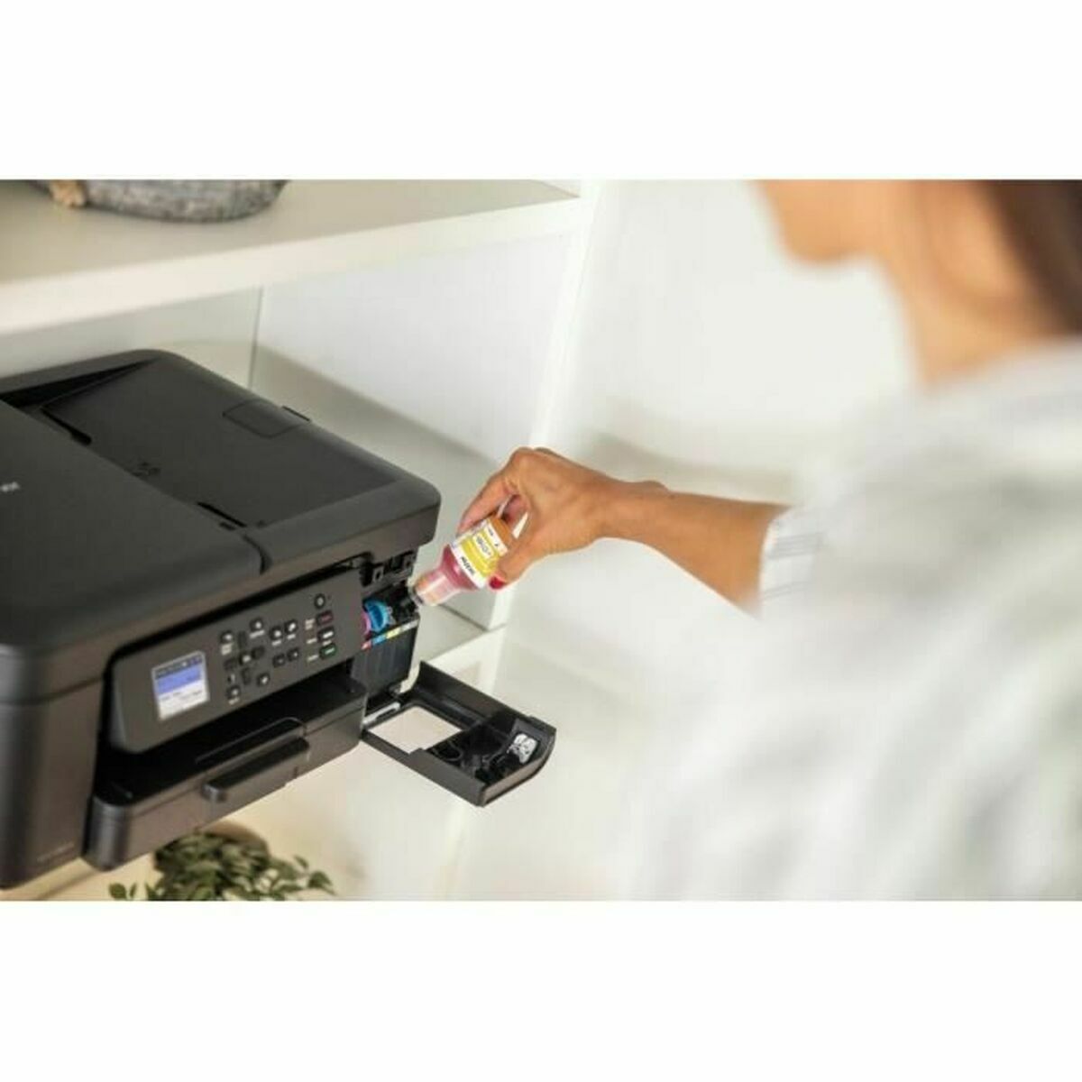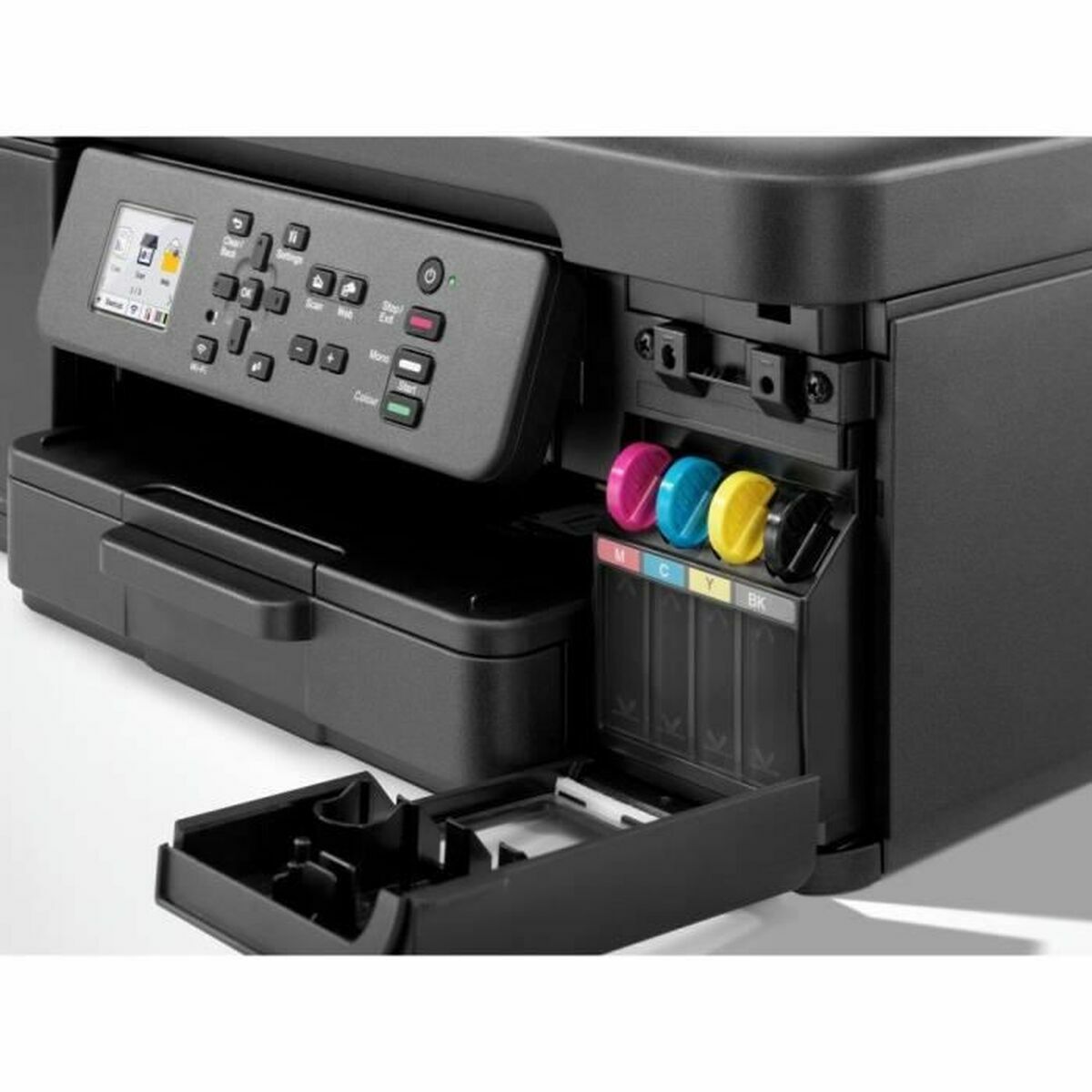 The Brother DCP-T780DW multifunction printer is a 3-in-1 device that combines printing, scanning, and copying functions with advanced inkjet technology, ideal for home and small office environments requiring versatile and efficient solutions. This printer offers a print speed of up to 27 pages per minute (ppm), enabling faster daily tasks with quality and speed, while its colour printing ensures sharp and vibrant results on documents and photos. Its black design and compact build include an easy-to-use LCD screen, which simplifies menu navigation and options directly from the device without needing a computer. Additionally, advanced connectivity with Wi-Fi and Wi-Fi Direct allows wireless printing from multiple mobile devices and laptops, eliminating cables and enhancing convenience in device placement. It supports A4 paper sizes and uses a refillable ink tank system that optimises printing costs and reduces interruptions, promoting efficient and sustainable long-term use. Overall, the Brother DCP-T780DW is a multifunction printer that offers a balanced combination of performance, quality, and functionality for users demanding flexibility and connectivity in both personal and professional settings.