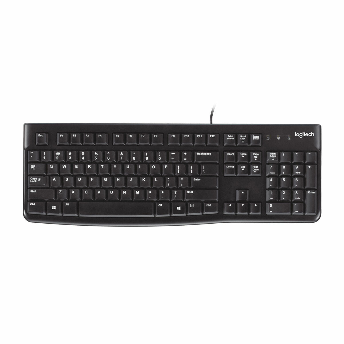 The budget-friendly USB keyboard that's built to last. Type smarter Your hands will enjoy the low-profile, virtually silent keys and standard layout with full-size F-keys and number pad. A tough worker The slim keyboard isn’t just sleek—it’s tough with a spill-resistant design,* sturdy tilt legs and durable keys. Easy does it You’ll be ready for business in no time with this plug-and-play keyboard—no software needed. * Tested under limited conditions (maximum of 60 ml liquid spillage). Do not immerse keyboard in liquid. Spill-resistant design* Liquid drains out of the keyboard, so you don’t have to worry about ruining your investment with accidental spills. Thin profile The keyboard has a thin profile that adds a sleek look to your desk while keeping your hands in a more comfortable, neutral position. Durable keys The keys can last up to 10 million keystrokes** so you can keep typing long after many keyboards have called it quits. Sturdy, adjustable tilt legs You can extend the sturdy folding legs to increase the keyboard tilt by 8 degrees to address your personal ergonomic needs. Plug-and-play USB connection Simple setup saves you time and resources—you just plug it into a USB port and start using it right away without software. Easy-to-read keys The bold, bright white characters make the keys easier to read—perfect for those with less-than-perfect vision. They’re less likely to wear off, too. Logitech reliability You get the high quality and reliability that’s made Logitech the global leader for keyboards and mice at a price you can afford—plus a 3-year limited hardware warranty. Curved space bar It keeps your hands in a more natural position so you can type in greater comfort. * Tested under limited conditions (maximum of 60 ml liquid spillage). Do not immerse keyboard in liquid. ** Excludes number lock key.