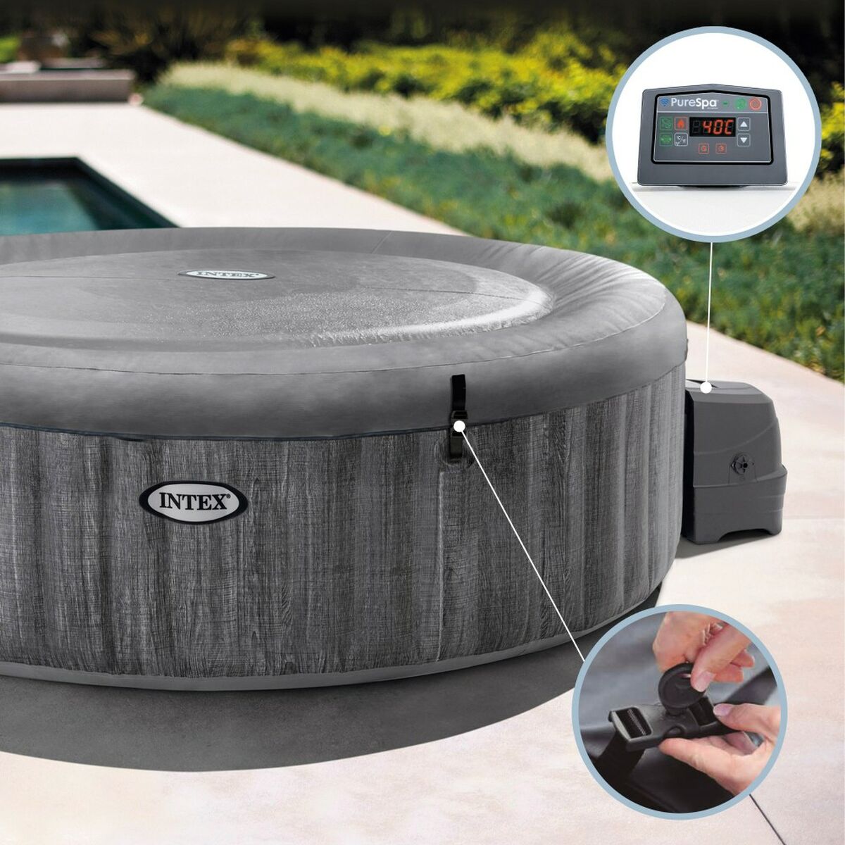 Pripučiamas SPA Intex Purespa Greywood Deluxe 28440EX 220-240 V 4 vietos 1741 l/h