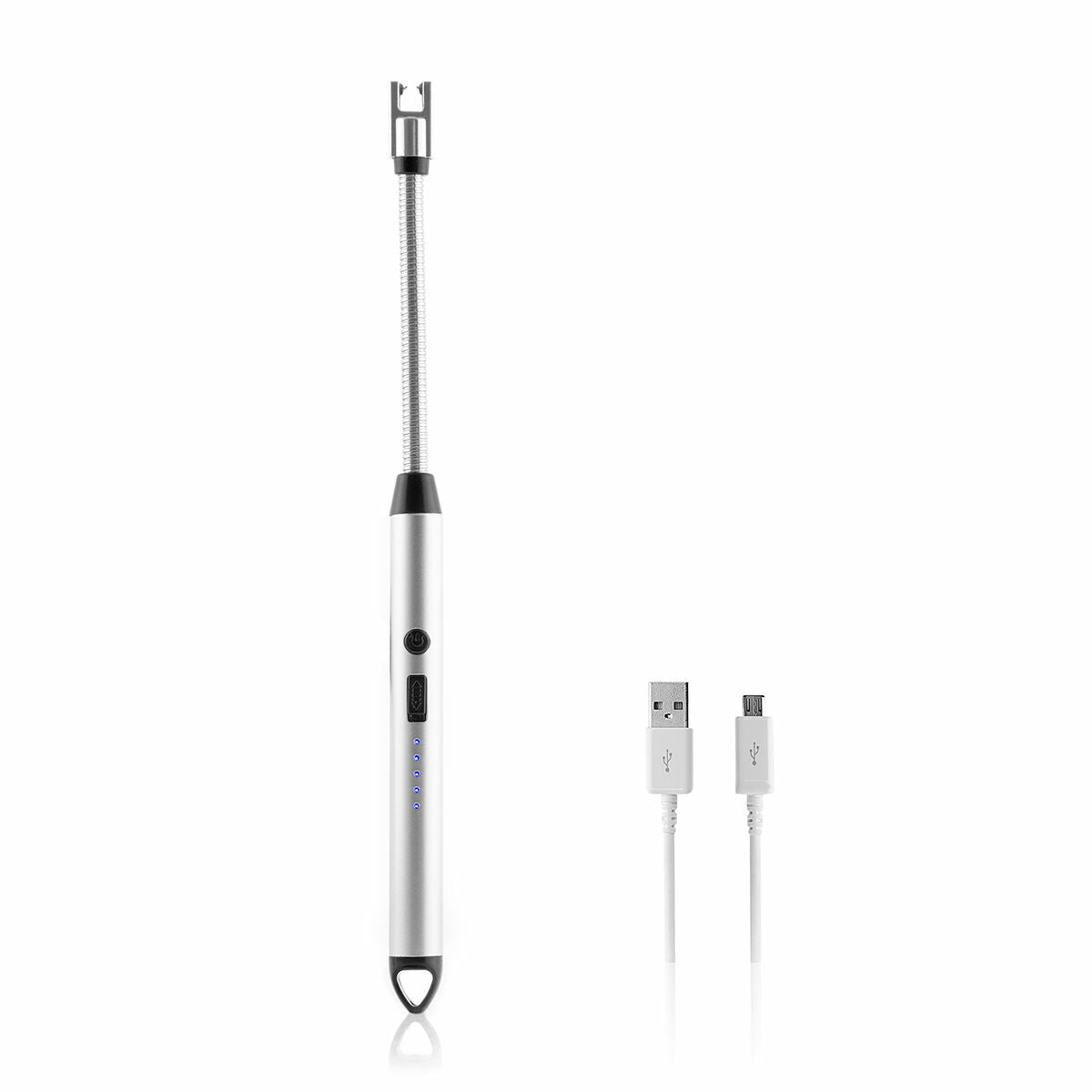 Šis įkraunamas ir lankstus elektrinis žiebtuvėlis idealiai tinka naudoti patalpose ir lauke, nes jo neišpučia vėjas, jis gali pasiekti sunkiai pasiekiamas vietas ir leidžia laikytis didesnio atstumo nuo uždegimo vietos, kad išvengtumėte nudegimų. Pridedamas USB ir mikro USB laidas.